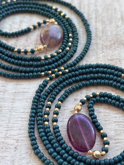 This waistbead measures 45 inches in length. If you require a longer size, please specify your desired length in the text box at checkout. Custom sizing is available upon request.