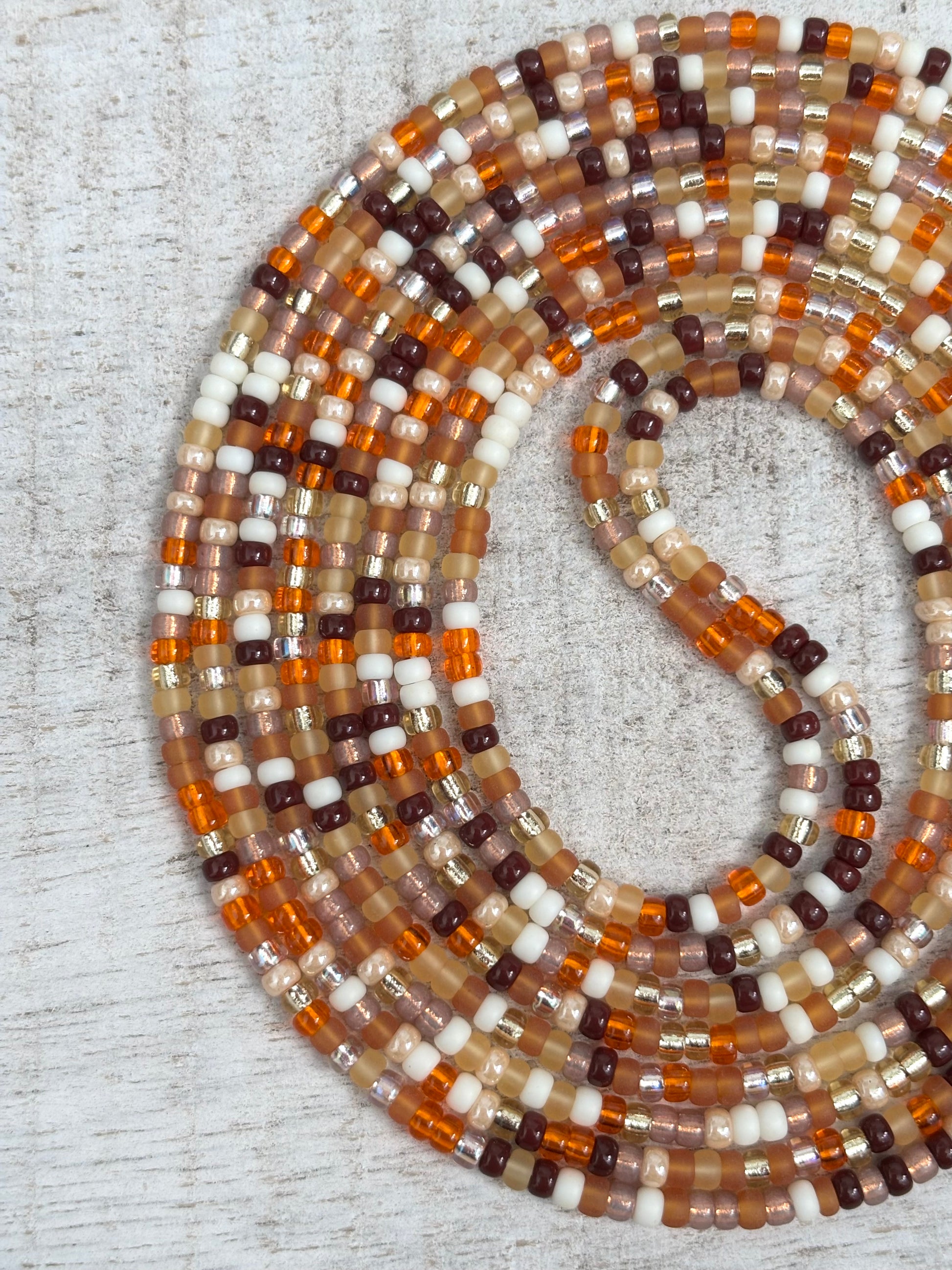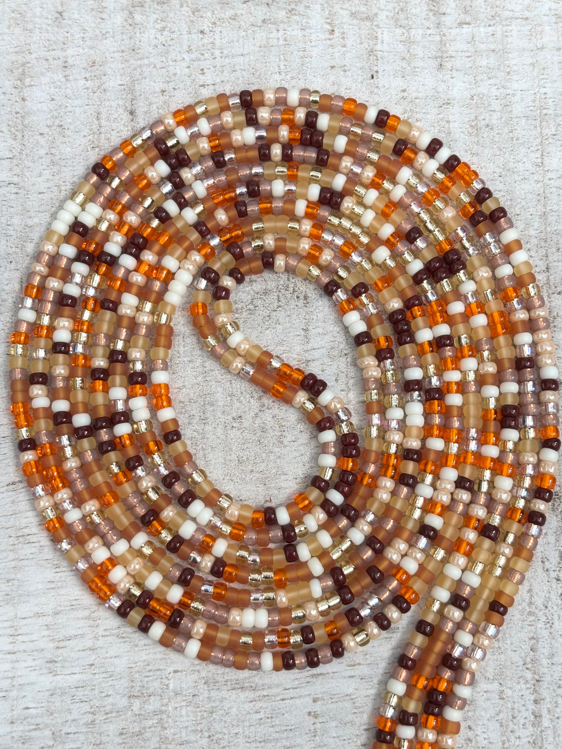 The Milk + Manuka Waistbead is a warm, comforting strand inspired by softness, nourishment, and quiet strength. Featuring a harmonious blend of creamy neutrals, honeyed amber tones, and subtle metallic accents, this waistbead evokes the feeling of warmth held close. Milk + Manuka is grounded, gentle, and deeply inviting, designed for those who find power in softness and beauty in balance.